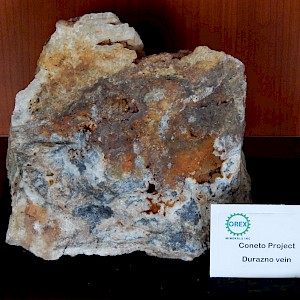 Oxide mineralization, Loma Verde quartz vein, BCO-02, Coneto property.