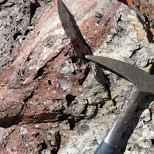 Hydrothermal hematite breccia vein, Promontorio zone, Coneto property.