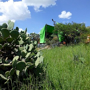 Drilling rig and mesquite tree (Prosopis), Coneto property.