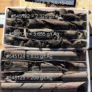SA-15-001 – 20.33 to 26.14 m, with assays.
